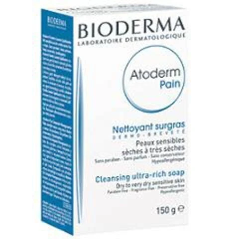 BIODERMA Atoderm Pain Pane detergente surgrassante quotidiano, purificante e liporestitutivo, adatto alla pelle molto secca anche con pruriti occasionali. Per neonati, bambini e adulti. Senza profumo, testato per il nichel. -Creare una schiuma nel palmo della mano e applicarla sulla pelle umida. Risciacquare ed asciugare delicatamente. Si consiglia di far seguire uno specifico trattamento di detersione.