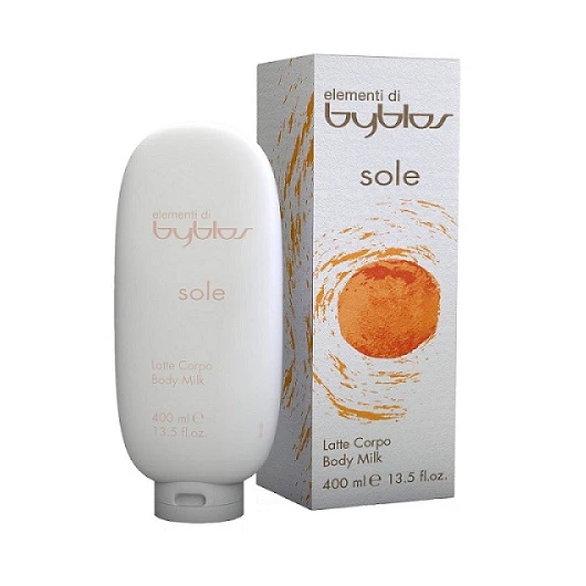 Byblos Sole – Latte Corpo 400 ml. In apertura tutta l’accecante energia del sole è affidata alle note aggrumate di limone e pompelmo addolcite dalla presenza del mandarino e della mela gialla. Nel cuore le note eleganti dei fiori bianchi, le antiche note del neroli unite a quelle sensuali del tuberosa e del gelsomino che vibrano insieme alle piccanti note dello zenzero. Nel fondo note morbide e avvolgenti di legno di sandalo e muschio, che scaldano le note più rigorose del legno di cedro