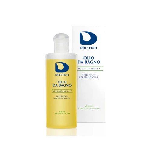 Dermon OLIO DA BAGNO ALLA VITAMINA E Indicazioni: rigenera e protegge la pelle inaridita dagli agenti atmosferici. Previene il precoce invecchiamento cutaneo.