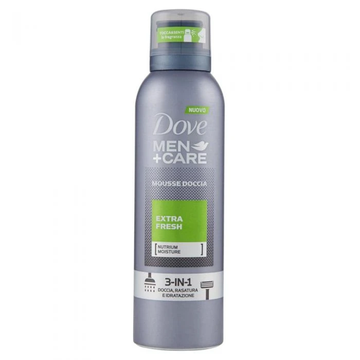 Dove Men Care Extra Fresh mousse doccia: lavarsi e radersi non mai stato cosi semplice – tutto in un unica soluzione 3-in-1. Dove Men+Care Mousse Doccia contiene una formula con Nutrium Moisture, appositamente pensata per gli uomini, per una pelle sana e forte.