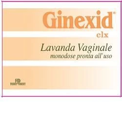 Ginexid Dispositivo medico CE. Lavanda vaginale a base di ingredienti di origine naturale che rispettano la delicata fisiologia delle mucose, aiuta a mantenere il giusto equilibrio della flora batterica vaginale. Inoltre svolge un’azione lenitiva e decongestionante e può essere utilizzata anche in presenza di patologie (vulvovaginiti specifiche e aspecifiche, irritazioni dell’area perianogenitale) e/o in associazione a trattamenti specifici contribuendo ad alleviare la sintomatologia: prurito, bruciore, dolore e irritazione. Prodotto indicato per l’igiene intima abituale, al termine del periodo mestruale, dopo rapporti sessuali, in caso di secrezioni abbondanti, dopo l’uso di contraccettivi locali (leggere prima le istruzioni sulla confezione degli stessi), per detergere ed asportare residui di medicinali usati per via vaginale e nel periodo del puerperio (lavaggio esterno del perineo). Modalità d’utilizzo Lavarsi le mani prima e dopo l’utilizzo del dispositivo medico. Ogni flacone contiene una dose già pronta per una irrigazione. Ruotare la parte superiore del tappo a farfalla sino alla rottura ed inserire a pressione la cannula sul tappo del flacone. Introdurre delicatamente la cannula in vagina e premere il flacone preferibilmente capovolto. Far defluire gradualmente tutta la soluzione all’interno della vagina. Al termine della lavanda asciugare leggermente all’esterno senza risciacquare. La lavanda può essere fatta in varie posizioni: stando sedute sul bidet o sul W.C., stando in piedi nella doccia o nella vasca da bagno, con un piede appoggiato al bordo. Non riutilizzare il flacone e la cannula dopo l’uso e smaltirli. Si raccomanda di fare un uso personale del dispositivo medico. Utilizzare 1-2 flaconi monodose alla settimana o secondo prescrizione medica. Avvertenze Tenere fuori dalla portata dei bambini. Evitare il contatto con gli occhi. Non ingerire. Il prodotto può presentare depositi sul fondo dovuti agli estratti naturali. Non utilizzare in caso di ipersensibilità individuale verso uno dei componenti del prodotto. La sicurezza d’uso del dispositivo durante gravidanza e allattamento non è stata dimostrata. In tali circostanze, si consiglia di consultare il proprio medico. Non sono note interazioni con altri prodotti, pertanto è consigliabile consultare il medico prima di utilizzare Ginexid in associazione ad altri dispositivi medici o farmaci ad uso vaginale. Effetti indesiderati L’uso, specie se prolungato, di tutti i prodotti per uso topico potrebbe dar luogo a fenomeni di sensibilizzazione. In tal caso interrompere il trattamento e consultare il medico per istituire idonea terapia. Qualora si riscontrassero effetti indesiderati, informare il proprio medico o il farmacista. Conservazione Conservare il dispositivo medico ben chiuso, in luogo fresco e asciutto, al riparo dalla luce e dal calore. Componenti Acqua; acqua distillata rosa; acqua distillata camomilla; acqua distillata hamamelis; clorexidina digluconato; essenza lavanda; acido lattico; cocamidopropil betaina; butil(26)OE(26)OP; olio di ricino idrogenato (40)OE. Formato Confezione contenente 3 flaconi monouso in PE da 100 ml con 3 cannule monouso in PVC.