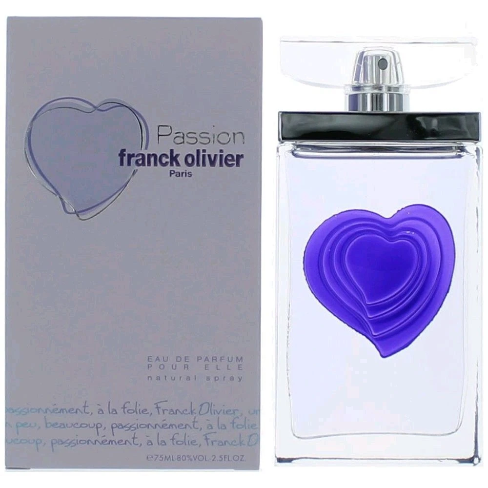Franck Olivier Passion donna è una fragranza fruttata. Contiene note di arancio amaro, mandarancio, ribes nero, pesca, papaya, gelsomino, eliotropio, rosa, viola, fiore tiarè, albero di mele, legno di sandalo e ambretta. Passion è stato lanciato nel 2005.