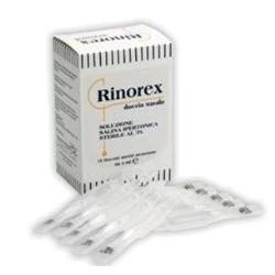 RINOREX doccia nasale Soluzione salina ipertonica al 3% di NaCl, a pH controllato e tamponata con sodio bicarbonato. È una soluzione sterile pronta all’uso, indicata in aerosolterapia come coadiuvante nel trattamento delle affezioni respiratorie, anche di natura virale, con compromissione della clearance muco-ciliare. Modalità d’utilizzo Lavare con accuratezza l’ampolla di nebulizzazione attenendosi scrupolosamente alle indicazioni del produttore del device inalatorio utilizzato. Accostare delicatamente l’erogatore al vestibolo nasale ed irrorare entrambe le narici. Componenti Aqua, sodium chloride, sodium bicarbonate. Avvertenze Tenere fuori dalla portata e dalla vista dei bambini. Evitare il contatto con gli occhi. Il prodotto è solo per uso inalatorio. La fiala non è destinata ad uso orale. La fiala è monodose e richiudibile; in caso di utilizzo parziale, il prodotto va utilizzato entro le 12 ore dalla prima apertura. La fiala è monodose e monouso, non richiudibile e non riutilizzabile una volta aperta. Conservazione Conservare il prodotto a temperatura ambiente (5°C- 25°C). Tenere il prodotto al riparo dalla luce e da fonti di calore. Non utilizzare il prodotto dopo la data di scadenza; la data di scadenza si riferisce al prodotto integro e correttamente conservato. Non utilizzare il prodotto se la confezione non si presenta integra. Formato Confezione contenente 15 fiale monodose sterili da 5 ml. Cod.FTCE141