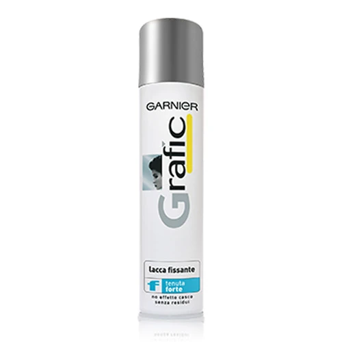 la lacca grafic garnier protegge dall’umidità (quindi ha un effetto anti-crespo ed evita che i capelli diventino elettrici), dal vento, dall’inquinamento e dagli agenti aggressivi. garnier grafic e una barriera fra i nostri capelli ed il mondo esterno. quindi anche se non avete un’acconciatura particolare, e consigliabile passare sempre un colpo di lacca prima di uscire per proteggersi dagli agenti esterni.questa lacca e adatta a tutti i tipi di acconciature; ottima per creare una pettinatura elaborata come un raccolto, o per chi ha i capelli corti una cresta o i capelli “sparati”, o per dare un colpo di finish e fissare.per dare il tocco finale basta vaporizzare questo prodotto a 30 cm di distanza dal capo. per dare volume pettinare i capelli basta mettersi a testa in giù e vaporizzare la lacca dalle radici fino alle punte. per strutturare ciocca a ciocca bisogna erogare da 5 cm di distanza.la lacca gragic garnier non lascia residui. i capelli sembreranno sempre perfettamente naturali!per eliminarla un colpo di spazzola (meglio se a setole morbide) sara più che sufficiente.precauzioni d’uso: recipiente sotto pressione. proteggere dai raggi solari e non esporre ad una temperatura superiore ai 50?c. non perforare ne bruciare nemmeno dopo l’uso. non vaporizzare su una fiamma o su un corpo incandescente. conservare al riparo da qualsiasi fonte di combustione. non fumare. conservare fuori dalla portata dei bambini. evitare di vaporizzare direttamente sugli occhi o sulla pelle irritata e di inalare intenzionalmente. non utilizzare per altro uso al di fuori di quello per cui il prodotto e destinato. non usare in ambiente ristretto.
