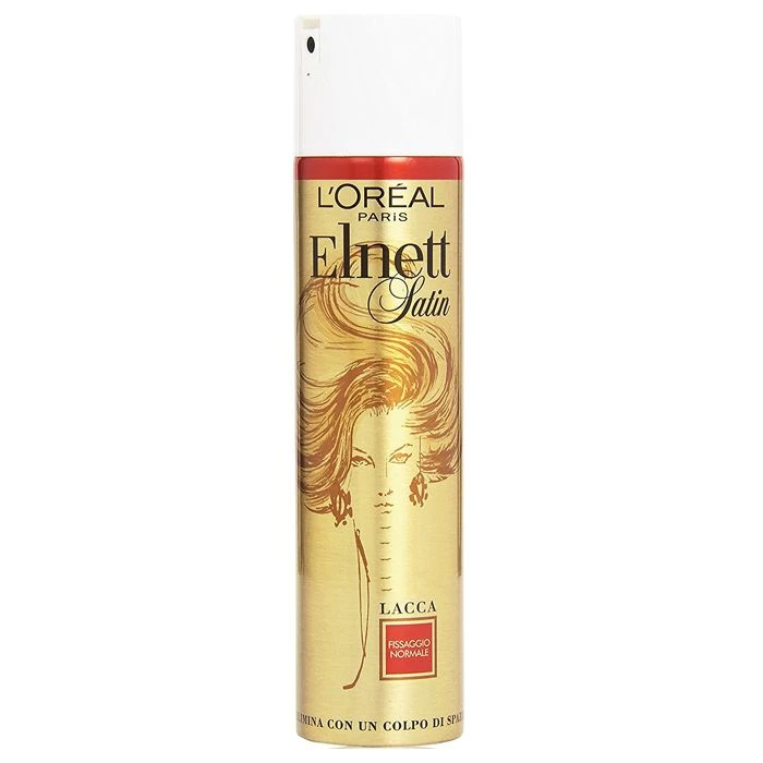 L’Oreal Elnett Satin è la lacca preferita dai parrucchieri ed è insostituibile. Fissa la tua acconciatura e la protegge dall’umidità. Lisci, ricci o volumizzati, i tuoi capelli rimangono in forma mantenendo il loro aspetto naturale. Qual è il segreto di Elnett? L’erogatore con micro-diffusione di Elnett fissa l’acconciatura senza incollare e irrigidirla. I capelli rimangono morbidi e brillanti. Si elimina con un colpo di spazzola. Quale risultato si può ottenere con Elnett? La tua pettinatura sarà perfetta e senza residui. Il risultato è immediato grazie alla sua asciugatura ultra-rapida. Perché le donne scelgono Elnett? Elnett è uno strumento di styling polivalente: si addice ai capelli lisci, mossi, piatti o ricci. La sua facile eliminazione permette di fissare differenti tipi di acconciatura per essere perfetta in tutte le occasioni: un cocktail, un matrimonio, un ricevimento.