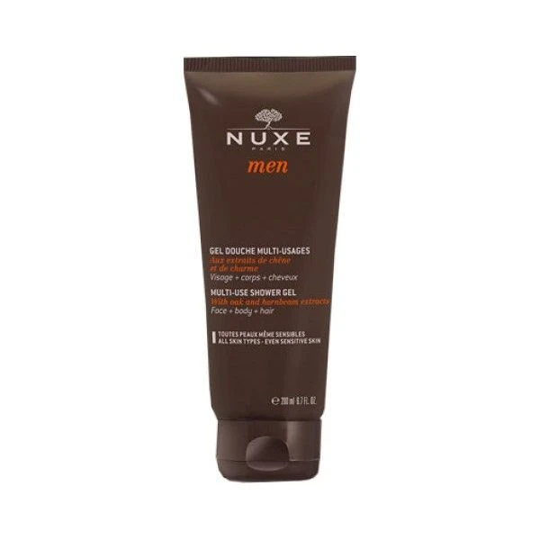 N U X E MEN GEL DOCCIA MULTI-FUNZIONE-Con la sua base lavante di origine vegetale e il suo pH fisiologico, deterge delicatamente il viso, il corpo e i capelli. Dona una vera e propria sensazione energizzante.