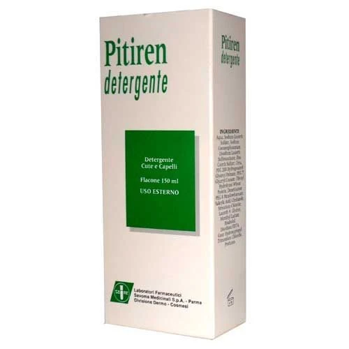 PITIREN DETERGENTE PER CUTE E CAPELLI 150ML è un’emulsione fluida che non contiene alcool. Questo detergente è indicato per detergere il cuoio capelluto quando si presenta un’elevata secrezione sebacea accompagnata da desquamazione, arrossamento e prurito. Grazie alla presenza di sostanze ad attività antisettica, disarrossante, lenitiva e rinfrescante, PITIREN DETERGENTE PER CUTE E CAPELLI 150ML si presta perfettamente alla cura della cute grassa, desquamata e per contrastare la forfora, quando è accompagnata da rossore prurito. Come si utilizza: applicare un giusto quantitativo di prodotto (10 ml, equivalenti a un cucchiaio di cucina circa) adatto a trattare la superficie interessata, previamente bagnata o inumidita. Massaggiare delicatamente la cute, lasciare agire il prodotto per qualche minuto, quindi risciacquare. In che formato è venduto PITIREN DETERGENTE PER CUTE E CAPELLI 150ML : flacone da 150ml.