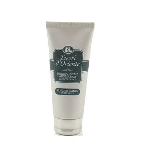 TESORI D’ORIENTE DOCCIA CREMA MUSCHIO BIANCO 100ml – Fortemente muschiato, ambrato, armonioso, questo profumo accarezza la pelle lasciando a lungo una seducente, inebriante sensazione. Questa Doccia Crema Aromatica contiene Oli Essenziali profumatissimi che rivitalizzano, rinfrescano e tonificano tutto il corpo, promuovendo un generale senso di piacevole benessere.